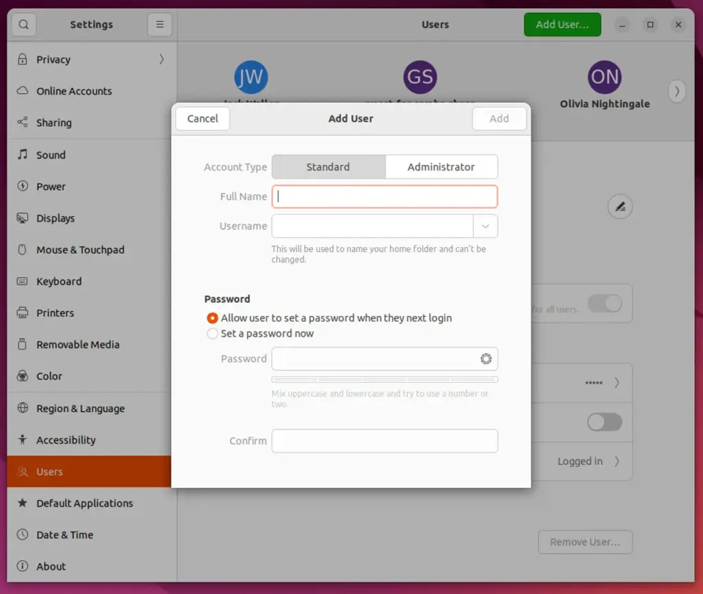 - यूजर एड (add) होने के पश्चात् passwd कमाण्ड से पासवर्ड सेट करें।