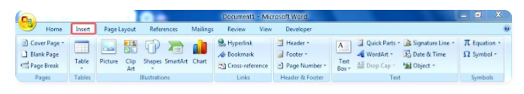 हेलो दोस्तों आज मैं आप लोगों को माइक्रोसॉफ्ट वर्ड 2007 के Insert मेनू के बारे में हिंदी में जानकारी देने