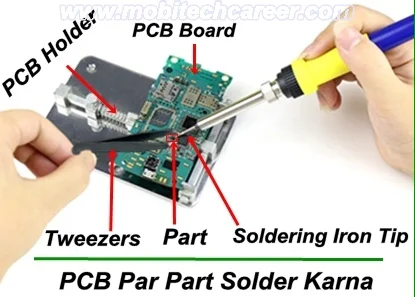 5. गर्म सोल्डरिंग आइरन से PCB पर से हटाये जाने वाले पुराने सोल्डर को गर्म करें |