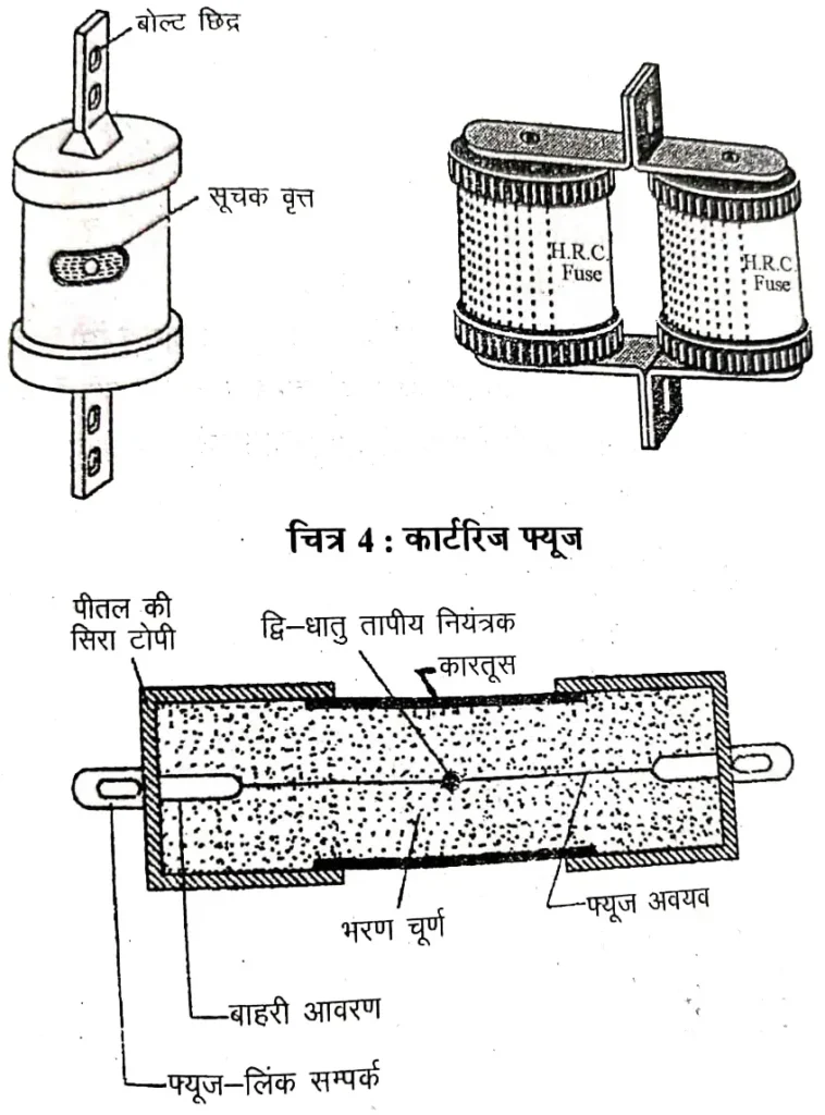 1. चित्र (4) के अनुसार कार्टरिज फ्यूज में विधुतरोधी पदार्थ पॉर्सिलिन टाइल अथवा शीशे से बनी बेलनाकार नली का प्रयोग करें।